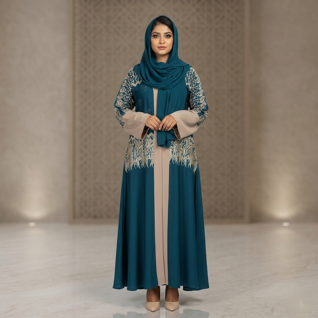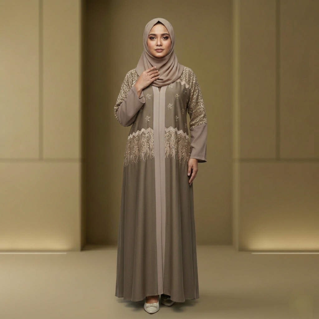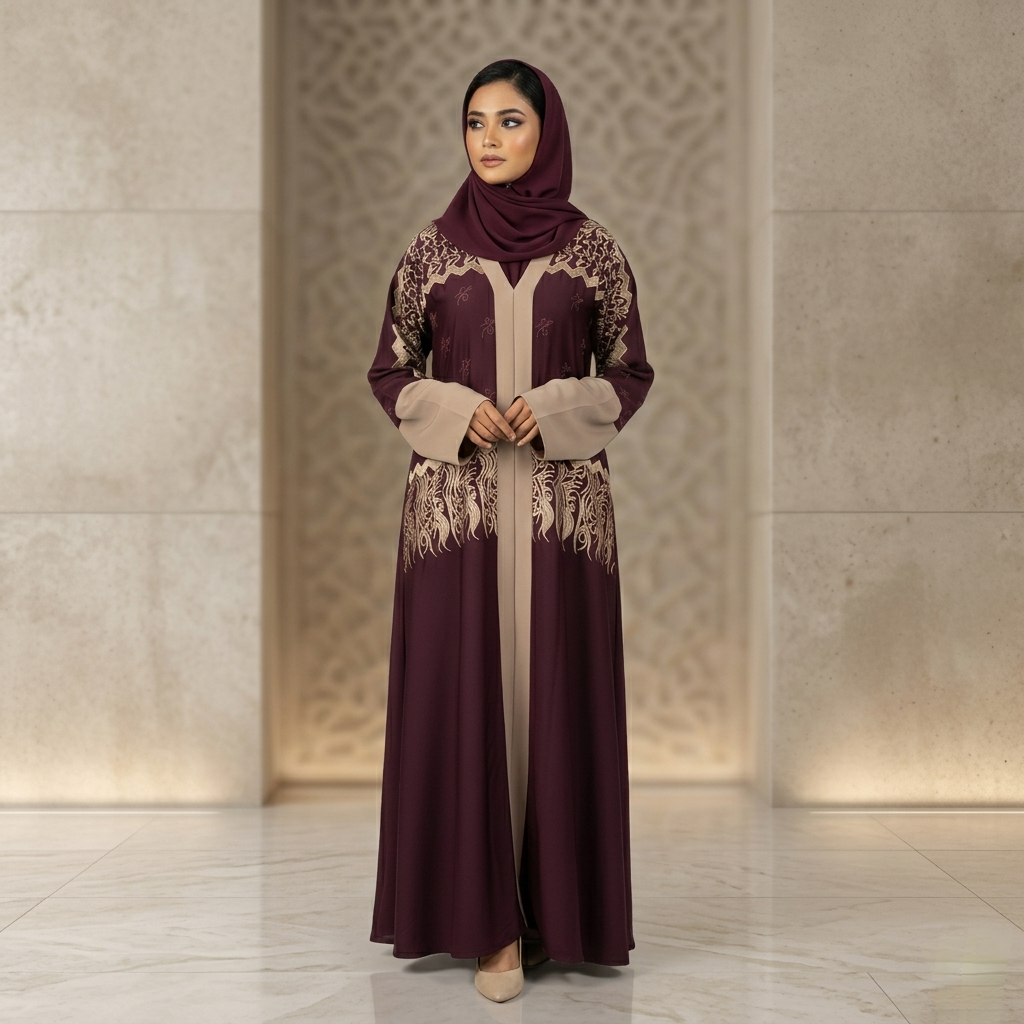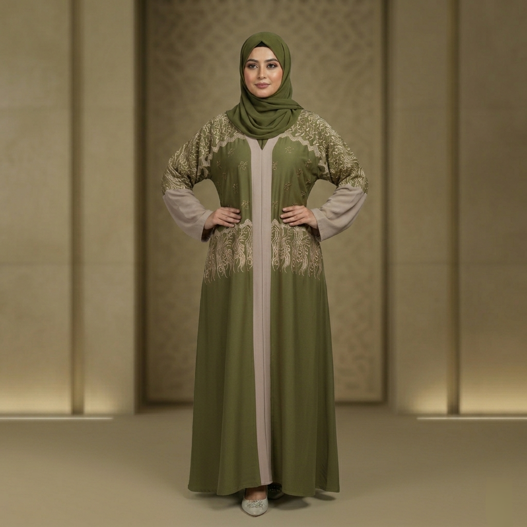 Name:জাফরান কাপড়ের সিঙ্গেল পার্ট এমব্রয়ডারি কাজ করা বোরকা