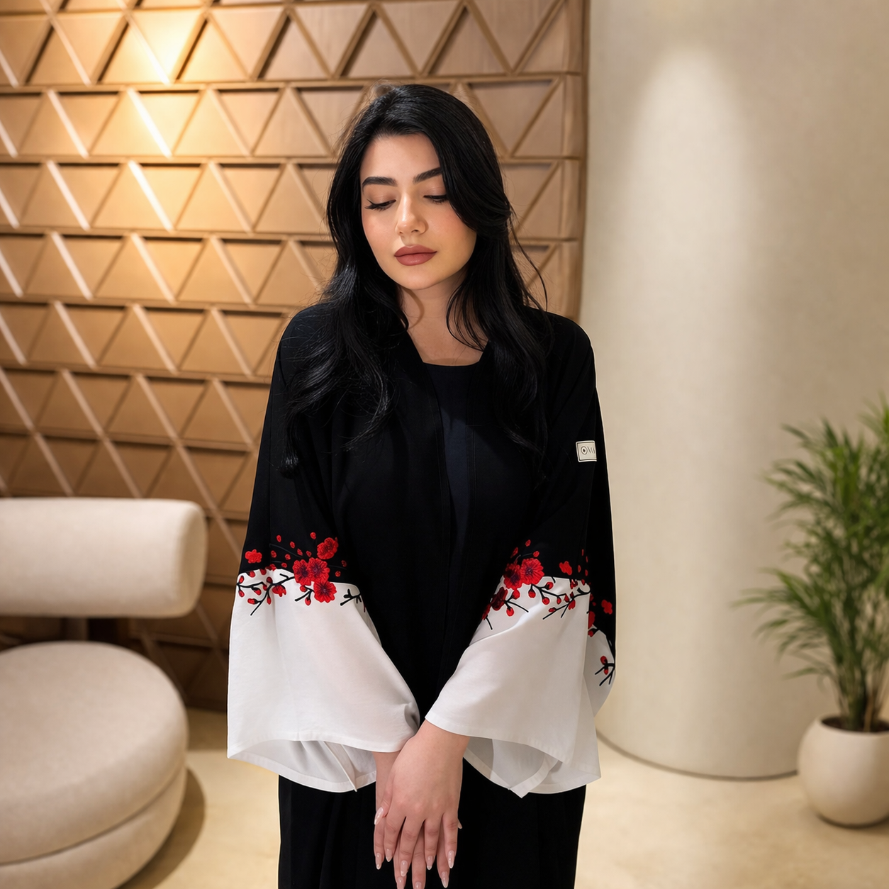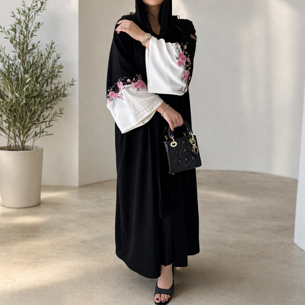 পিংক এন্ড রেড রোজ এমব্রয়ডারি বোরকা
